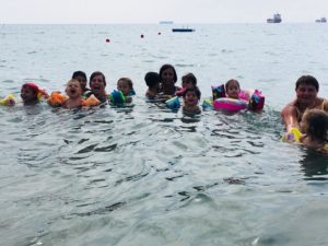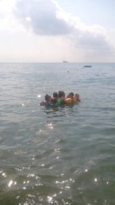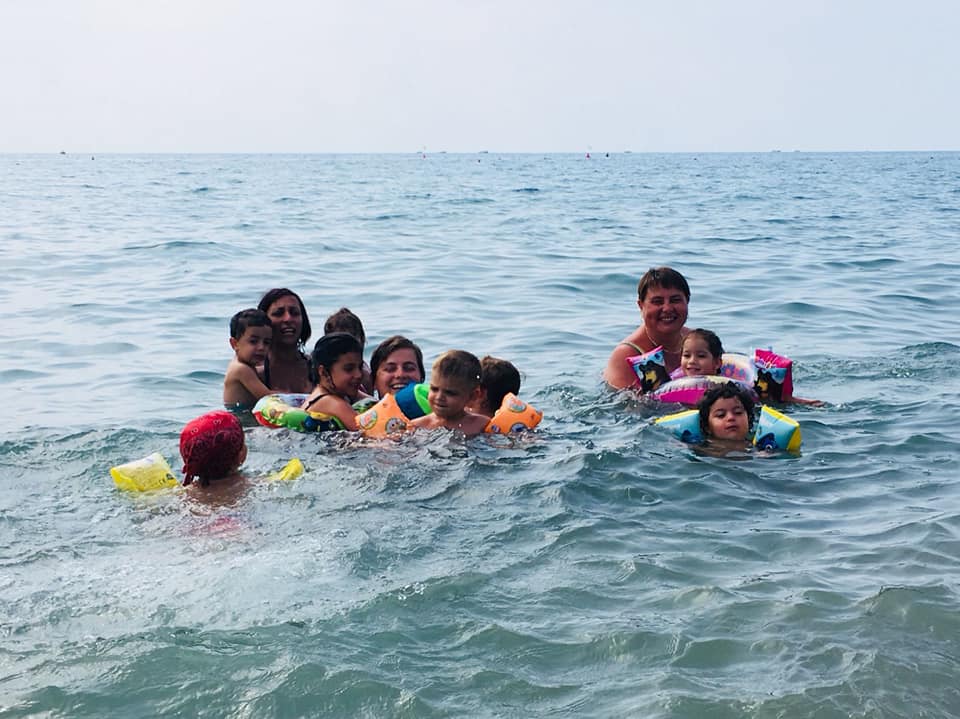 Grazie al servizio pulmino i nostri bambini partivano tutte le mattine con le maestre ed in pochi minuti arrivavano allo stabilimento balneare. I titolari dello stabilimento avevano gentilmente riservato al nostro Centro estivo diversi spazi dedicati, all’ombra nelle ore più calde, e tavoli e menù speciali per il pranzo.