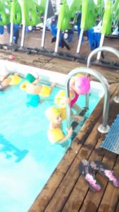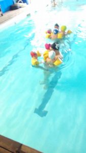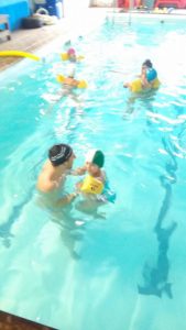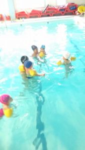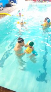 I bambini hanno inoltre potuto nuotare con braccioli, giochi e salvagenti. La lezioni in piscina sono molto amate dai bambini, anche dai più piccoli, e si svolgono sempre in un clima di gioia. I bambini vengono abituati gradualmente all’acqua, giocando e facendo tante attività diverse con gli istruttori.