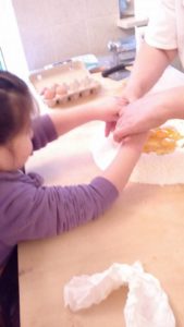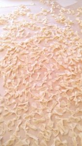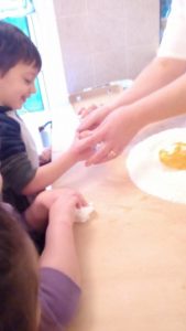 Questa settimana grazie all’aiuto della nostra cuoca Maria Paola i bambini…si sono preparati il pranzo! Infatti i bambini hanno imparato a fare la pasta all’uovo, delle deliziose farfalline, che poi a pranzo sono state servite quale primo piatto del menù! I bambini si sono divertiti moltissimo, hanno visto come si è “trasformata” la farina in un impasto, hanno rotto la uova (tante….), hanno steso con dei piccoli mattarelli la pasta e poi hanno scelto la forma a farfallina! Ma non solo: soddisfatti della propria opera…si sono mangiati tutto! Guardate che belle foto!
